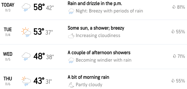 Monday kicked off with sunshine that turned into heavy clouds, then ultimately turned into showers that are currently rolling through Burlington. Those temps sitting comfortably in the low to mid 50s today will dip back into the 30s overnight as the rain clears out. Tuesday brings a mostly dry reprieve with morning clouds breaking for afternoon sun, though northwest winds will keep things cooler around 50. Wednesday looks soggy with steady rain developing by afternoon, and Thursday keeps the unsettled pattern going with morning showers. The weekend ahead stays cool and damp with Saturday showers and another round of rain possible Sunday, both days struggling to reach the mid 40s.